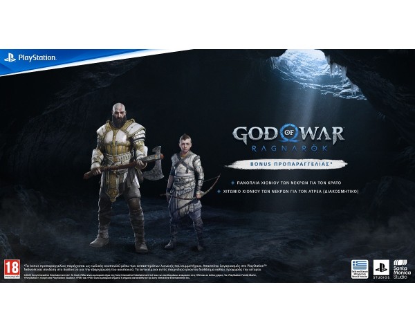 • Προπαραγγείλτε το God of War Ragnarök για να λάβετε έναν κωδικό για να διεκδικήσετε τα αντικείμενα* Πανοπλία Χιονιού των Νεκρών για τον Κράτο και Χιτώνιο Χιονιού των Νεκρών (διακοσμητικό) για τον Ατρέα όταν κυκλοφορήσει το παιχνίδι στις 09/11/2022!